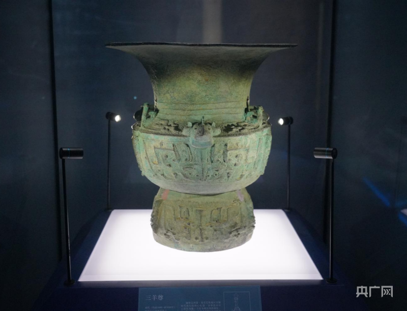 商代三羊铜尊展览(央广网发刘炼志摄)