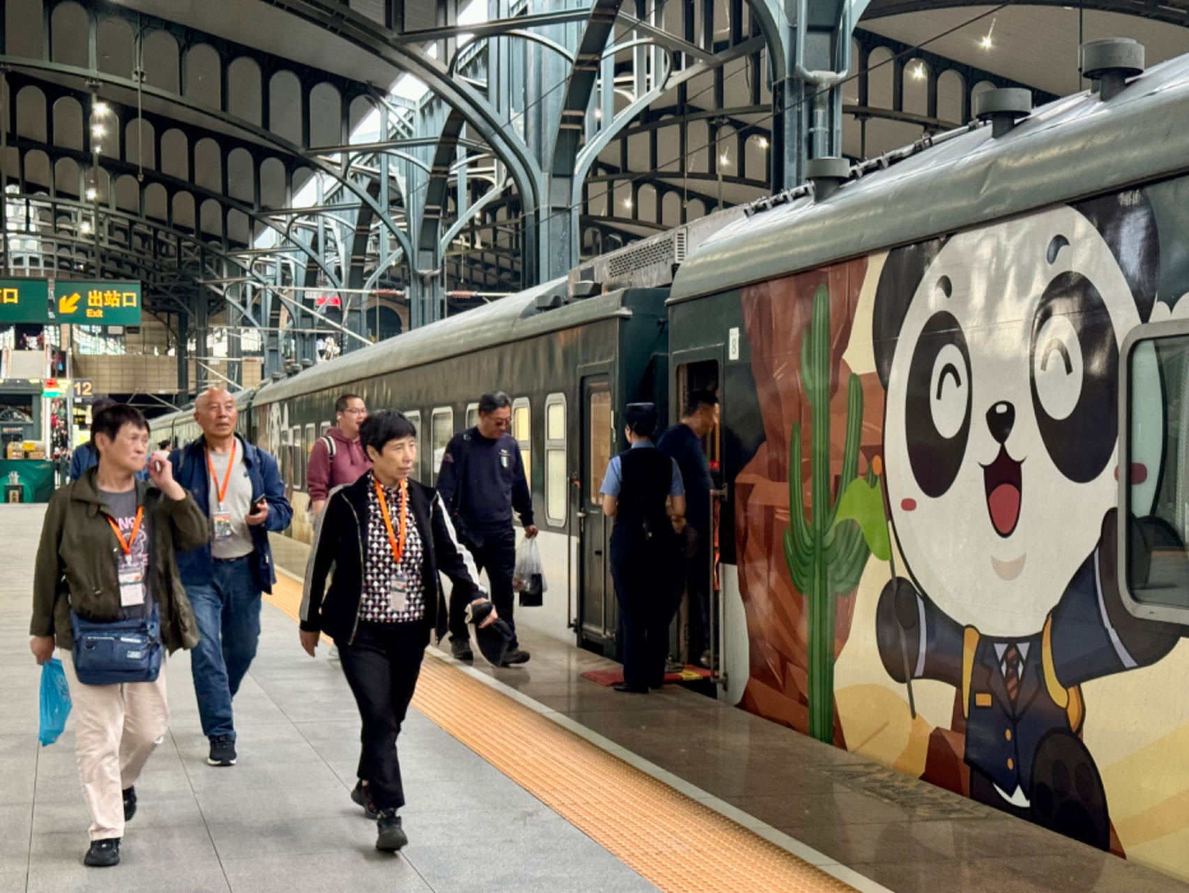 游客即将乘坐“熊猫专列”前往漠河(央广网记者马俊玮摄)