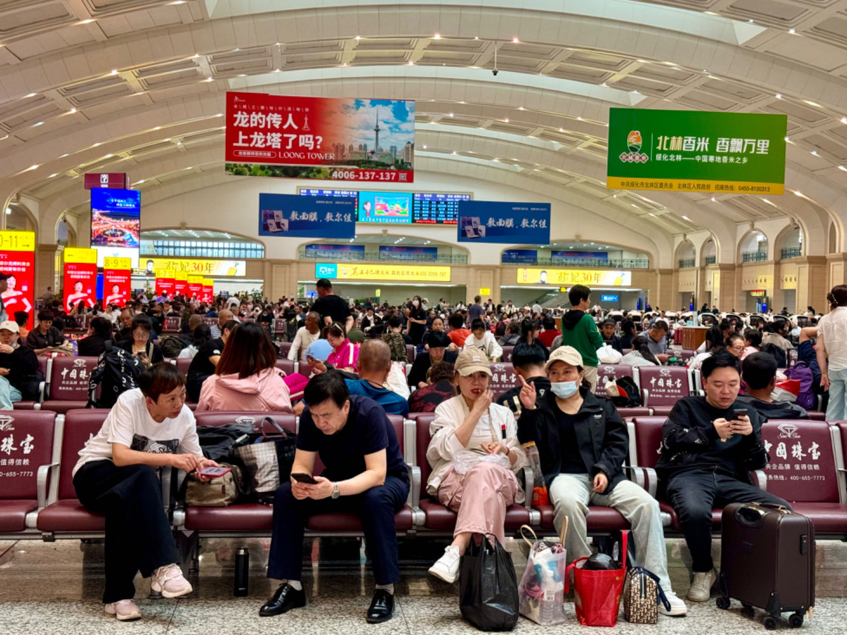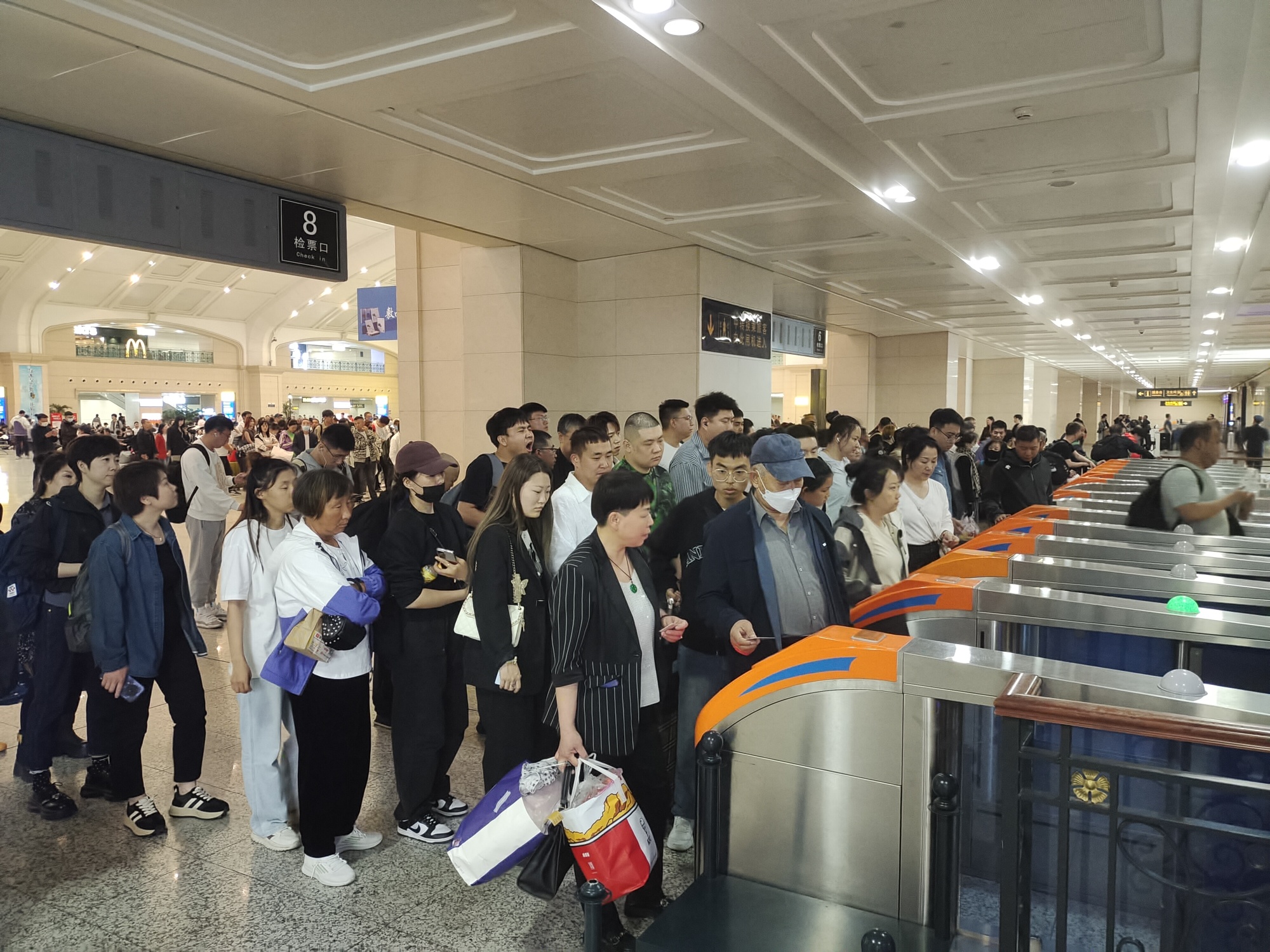 哈尔滨火车站候车室人头攒动(央广网记者马俊玮摄)