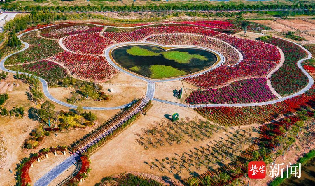 当无人机镜头从高空俯瞰,月季花海温柔地拥抱着碧绿的湖水,勾勒出一个爱心的形状,心形湖是整个公园的中心,也是花蕊的部分。湖中种植的睡莲,寓意“百年好合、佳偶天成”,给人以温馨浪漫的感觉。五彩斑斓的月季花海,宛如一幅幅油画,一朵朵色彩各异的月季花,俏立在枝头热烈绽放,千姿百态、明媚生动,浪漫由此铺展开来。
