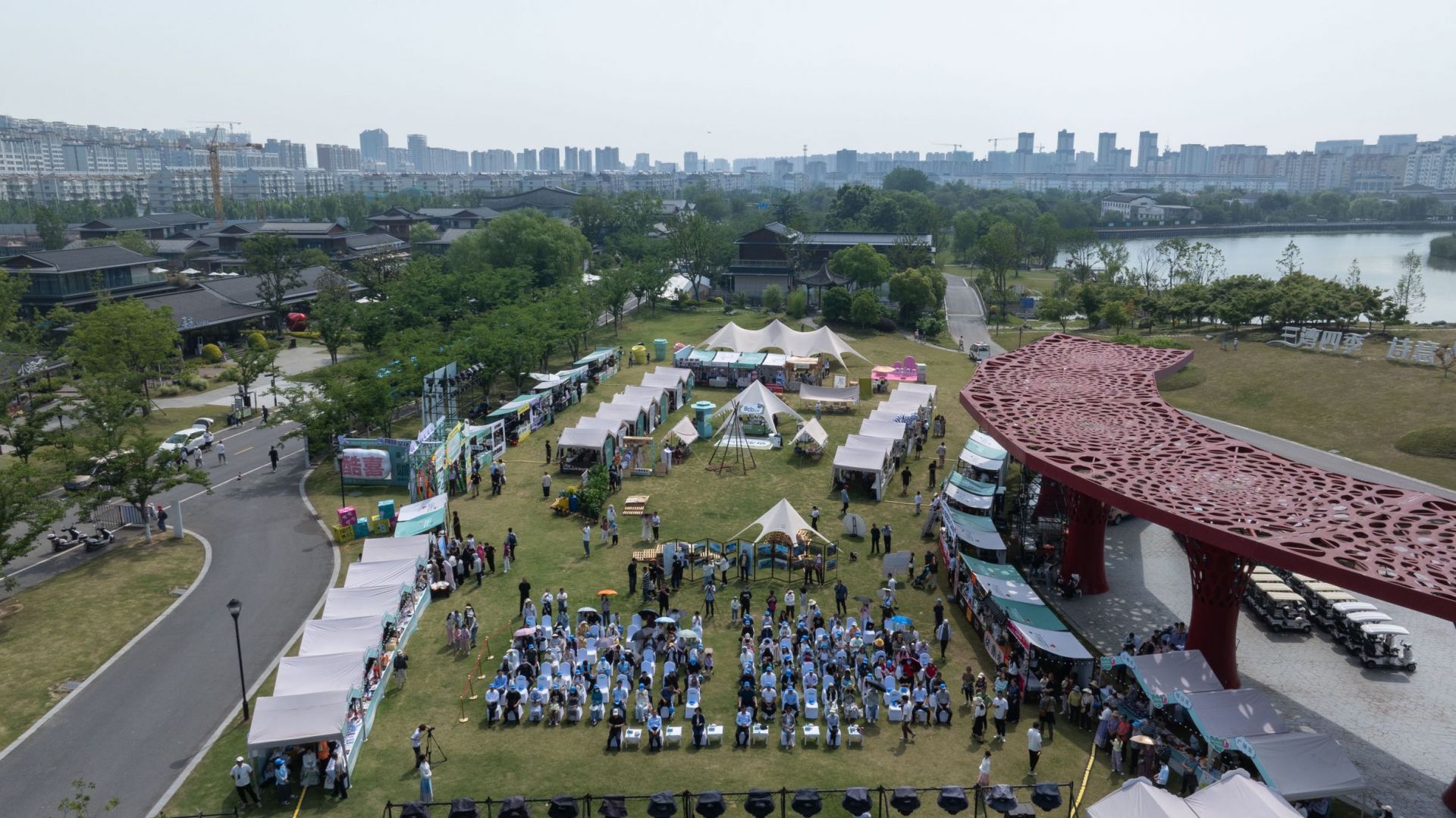 今天上午,活动在运河三湾风景区树荫连廊草坪如期举行。现场举办了“烟花三月”休闲文化市集,汇集各县(市、区)特色非遗、文博等文创产品展览展销。此外,现场还设置了多个展位,用于展示和推介扬州的文化旅游资源。