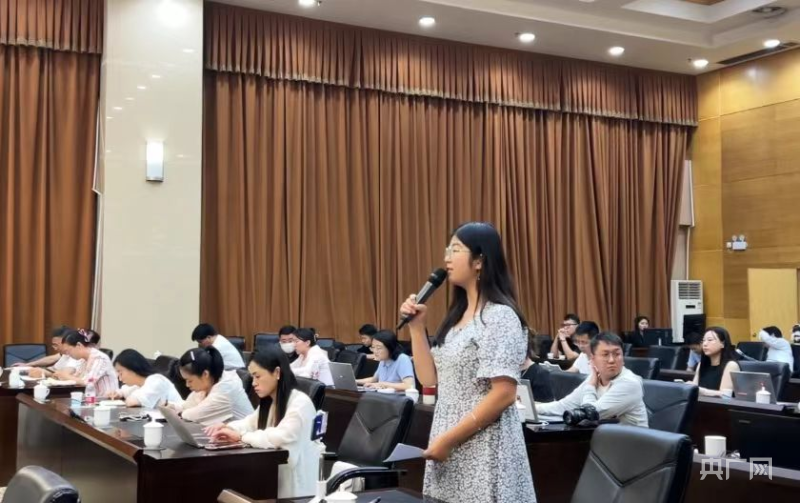 央广网记者在发布会现场提问(央广网记者 彭华 摄)