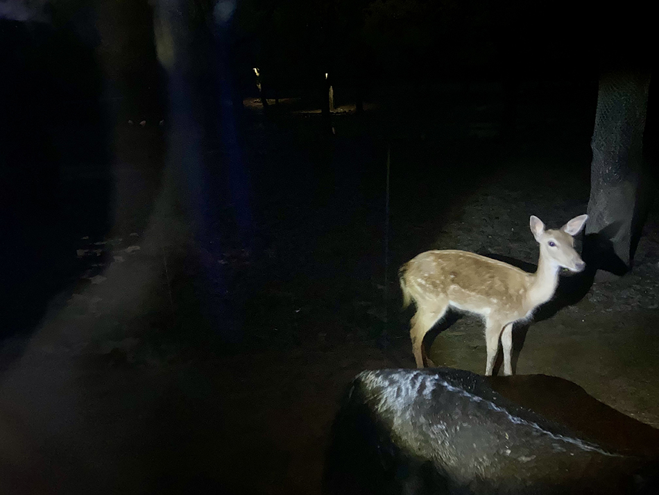 一只小鹿在黑暗中活动。本文图片均为澎湃新闻记者陈悦摄