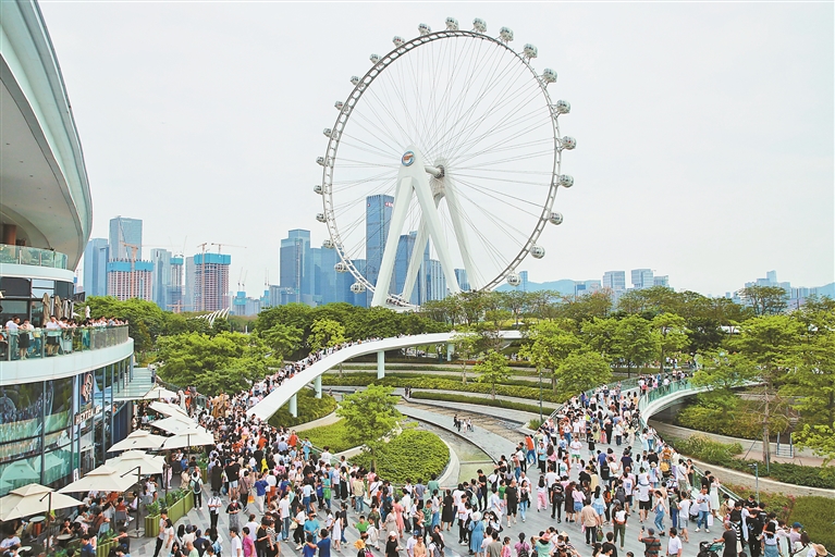 东岸西岸滨海体验式商业街区、“湾区之光”摩天轮、海滨文化公园、“湾区之声”深圳滨海艺术中心、JW万豪酒店“光之翼”……欢乐港湾拥有的多元业态,可以让湾区游客及市民畅享吃喝游乐购、欣赏国际顶尖剧目、星级酒店住宿等一站式配套体验。