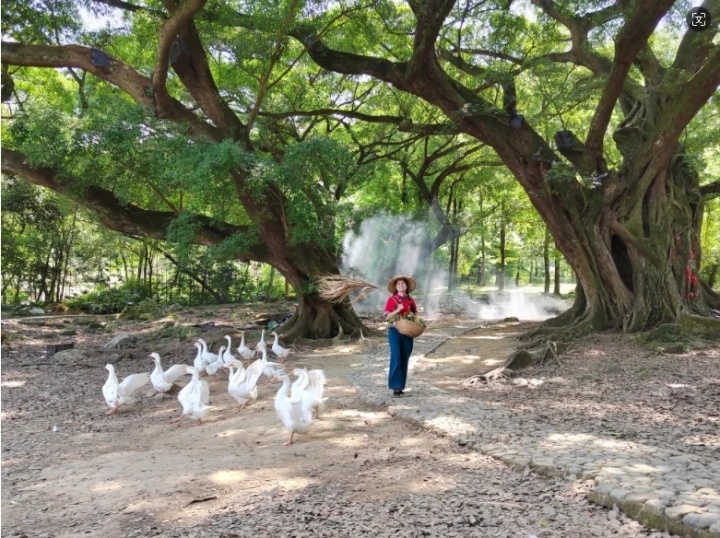 在牙城镇渡头村榕枫林景区,不仅有枝繁叶茂的千年古榕树,还有穿着蓑衣、戴着斗笠的老翁牵着牛在林间行走,挑担的阿婶跟随身后,“鹅姐”在“雾气”中赶着一群白色的大鹅,从林间深处跑来——这样的场景,吸引了许多游客驻足拍照。“鹅姐”等人都是渡头村村民,随着霞浦摄影旅游发展,他们转型成为“摄影模特”,每个月能有几千元收入。记者了解到,近年来,霞浦县衍生了摄影引导、摄影模特等新职业,直接带动群众就业2万多人,促进旅游增收10亿元以上。