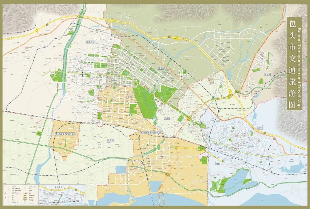 道路信息修改与新增。近两年,包头市建设步伐加快,城市面貌日新月异,新增道路众多。此次地图道路更新采用时效性为2023年下半年的最新遥感影像数据对市区的道路网络进行精准绘制。参考高德地图、百度地图等权威导航软件数据,结合民政部门资料对道路名称等关键信息进行逐一核对和更新,确保新版交通旅游图能够准确反映包头市的最新交通状况。