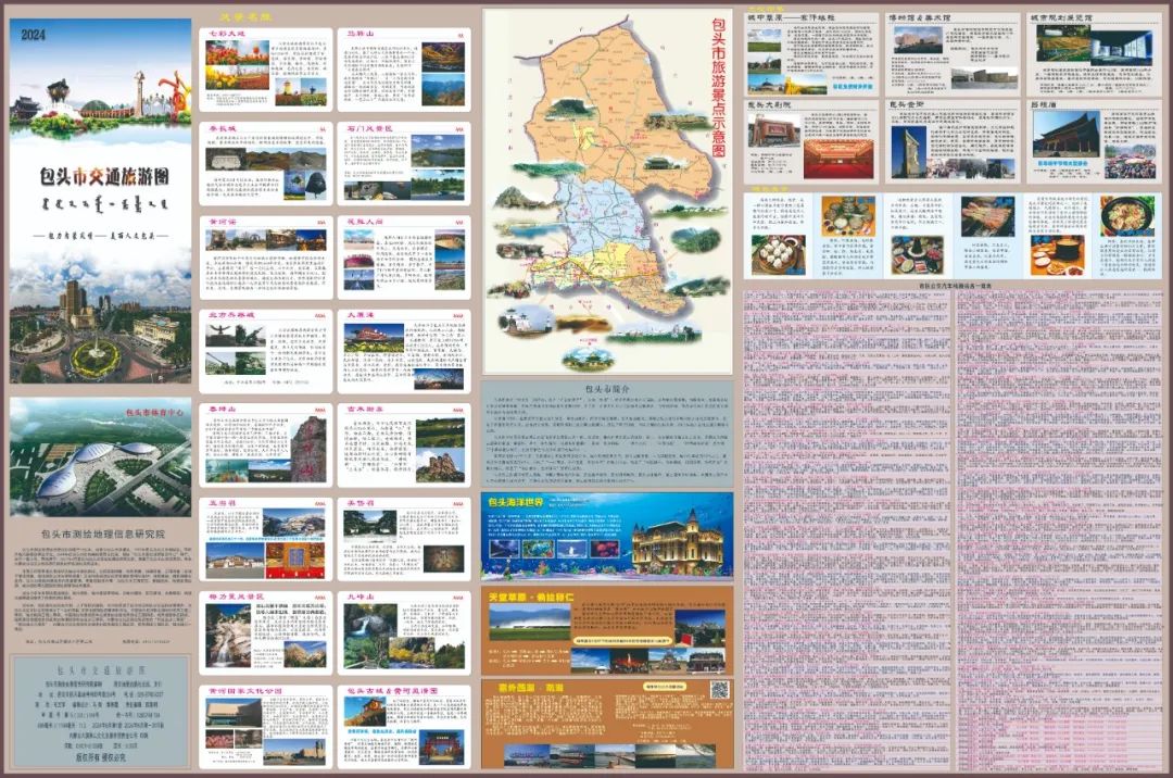 包头市自然资源局更新完成并发布了新版《包头市交通旅游图》,此次更新突出优化了我市城市交通路线、学校信息和地图背面景点图文设计,新增了黄河国家文化公园、包头古城等几处新开发景观。
