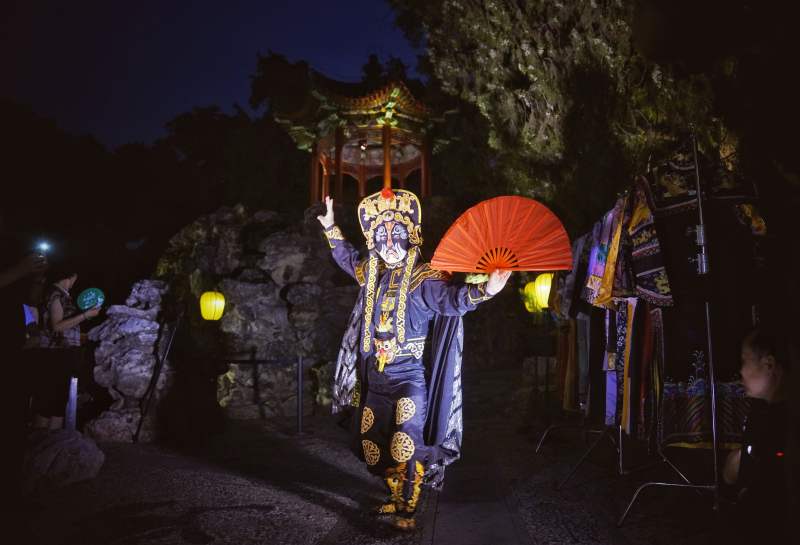 7月5日,北海公园的特色晚间文化活动《印·静心》拉开帷幕,川剧变脸等非物质文化遗产项目的表演,让游客在近距离观赏中感受传统艺术的独特魅力。新京报记者薛珺摄