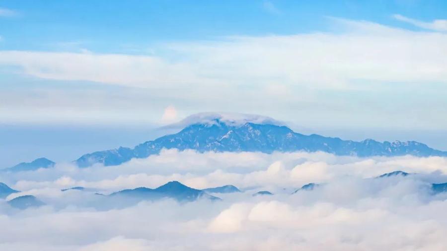 5日早上,从济南看泰山之巅的多层荚状云。燕瑞国摄影