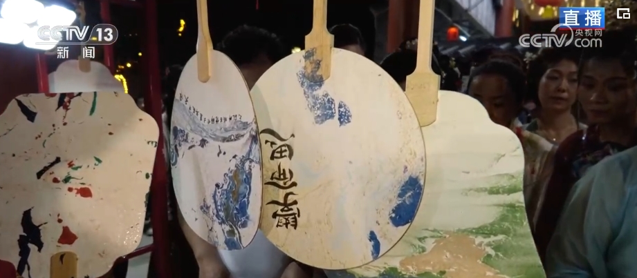 逛累了,来到归德大集上,有几十种各式各样的小吃。喝一口特色的杏仁茶,吃一口当地特色的吊炉烧饼,天南地北的美食,让游客此行不虚。除了好吃的、好玩的,百姓对于传统文化的需求越来越旺盛,古城也植入演艺演出、民俗表演、文旅文创等40余项新业态。各具其韵的非遗艺术品现场有很多国家级和省级的物质文化遗产。漆扇以扇子为载体,运用国家级非遗漆染工艺,手工染制而成的艺术品。因为每次渲染它的颜色和动作都不一样,所以每把漆扇也都不一样,有的像是一副泼墨山水画,有的色彩斑斓像是田园美景,各具其韵、独一无二。古法制香焚香消暑安神