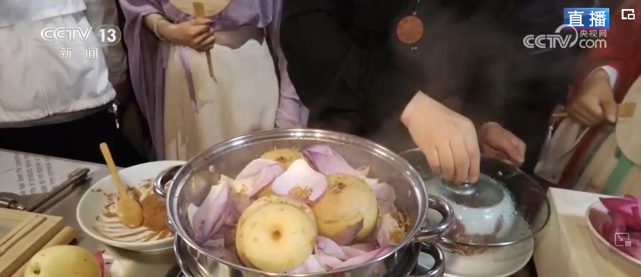 第二个要介绍的非遗是古法制香。古人在消夏避暑时,非常重注嗅觉的感受,喜欢在暑天焚香来驱散闷热潮湿的暑气。同时,清凉怡人的气味能让人心神皆清,免受暑烦所扰。雪中春信是苏东坡发明的,用冬天落在梅花上的雪,收集下来与香料混合制作而成。鹅梨账中香是将梨的顶部削掉,核挖空,把梨做成容器,然后将沉香粉、檀香粉按比例加入,再盖上顶部。如此反复锅中蒸三次,让鹅梨清甜的汁水浸入香料中,具有非常独特的味道,具有消暑安神的效果。 打卡“火星文旅”新场景出游新体验