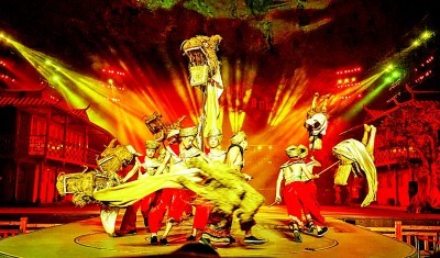 腾龙洞内上演的土家族原生态情景歌舞剧《夷水丽川》。湖北恩施腾龙洞大峡谷国家地质公园管理局提供