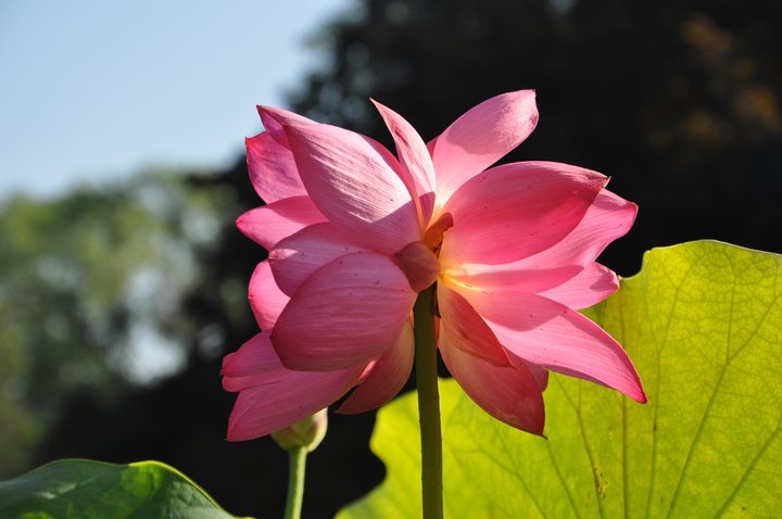 6月17日发现第二朵并蒂莲,品种为“飞虹”,是粉红色重瓣型荷花,发现时也是花苞状态,6月21日半开,6月22日盛开。
