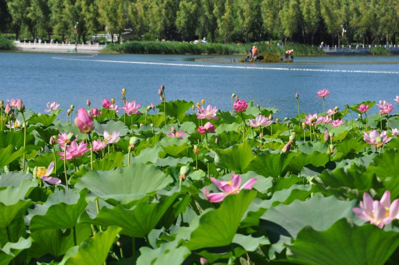 6月23日,在湖区东北角荷花荡区内又发现了第四朵并蒂莲,品种为“白洋淀红莲”,为粉红色单瓣型,于6月24日绽放。