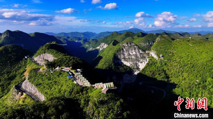 近日,航拍乐业大石围天坑群景区“悬崖露营地”。(大石围天坑群景区供图)