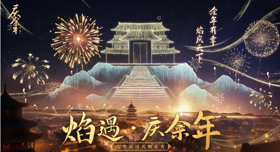 “焰遇·庆余年”大型沉浸式烟花秀,这是一场以烟花为笔的魔法创作!从范闲大婚的喜庆红妆,到春闱科考的庄重氛围;从赏菊大会的雅致风情,到诗游万里的豪情壮志……每一个经典场景都被巧妙转化为烟花的绚烂瞬间。特别是那震撼人心的“十里红妆”与无人机编队绘就的“庆国江山图”,还有央视春晚同款“七彩祥云”的限定回归,简直是科技与美学的完美碰撞,让你的眼球享受前所未有的极致盛宴!