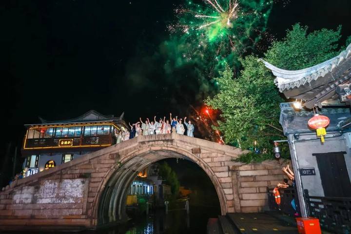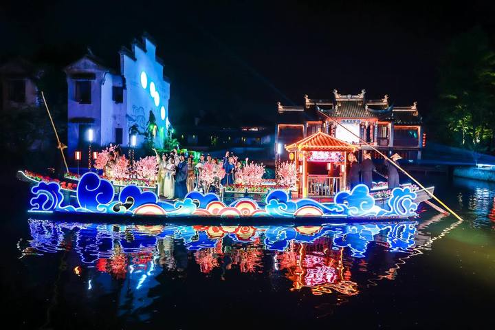 这次夜游就像个大型“穿越派对”,八艘花船在夕阳的余晖下翩翩起舞,好像从千年前的江南水乡穿越而来,将古镇的历史与现代审美玩了个“混搭”。每艘花船都有属于自己的小故事和亮点,加上现代舞美技术和互动演绎的巧妙结合,让游客们在欣赏美景的同时,也能感受到西塘文化的深厚底蕴。