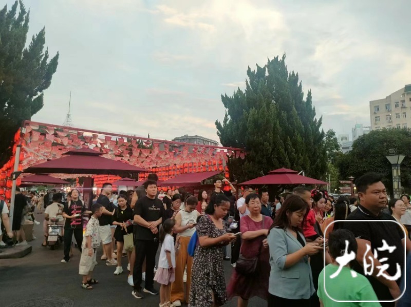 当晚9点多,大皖新闻记者离开滕王阁时,游客仍然非常多,从景区出去的道路因车辆及行人太多,堵了不少时间。据了解,虽然楼阁9点后不再售票,但游客仍然喜欢在阁楼附近夜游,感受晚上的滕王阁风景与夜生活。