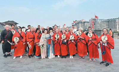 外国游客登上西安城墙参观游览。西安卓恒国旅供图