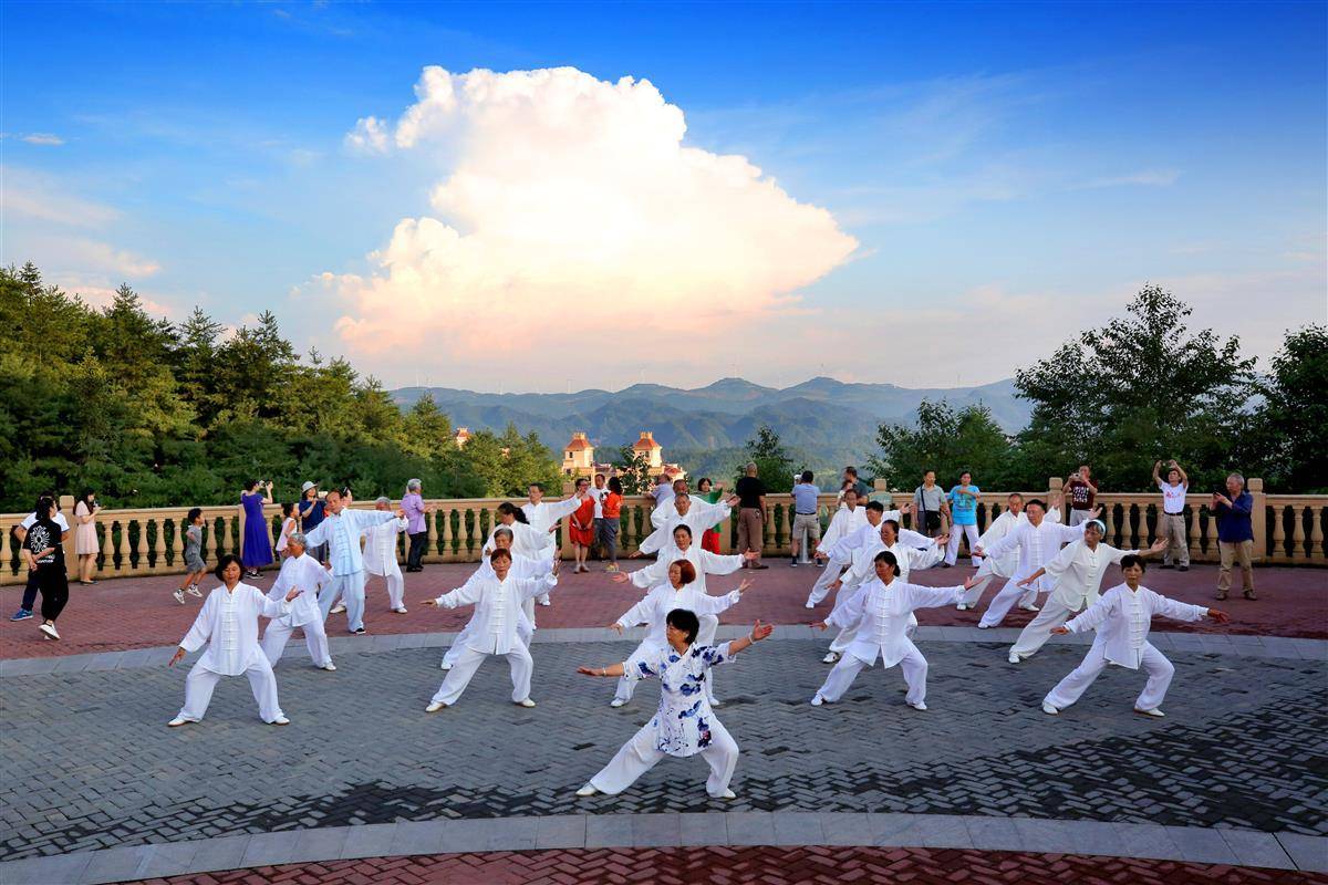 在苏马荡省级旅游度假区,“候鸟”们正在练太极。(通讯员 郭贤乐摄)