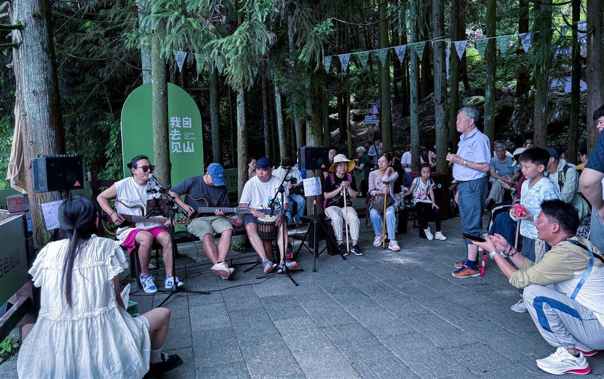 游客在恩施大峡谷景区内欣赏乐队演唱。(通讯员 胡成勇 摄)