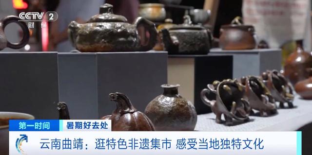 进入暑期,南城门广场旁的特色非遗集市也成为游客们的好去处之一。当地的非遗集市,依托特色的“爨文化”,变得更加有趣。首先是有“爨文化”元素的陶瓷制品,还有象征着招财纳福的云南瓦猫。