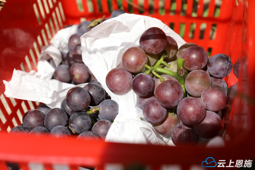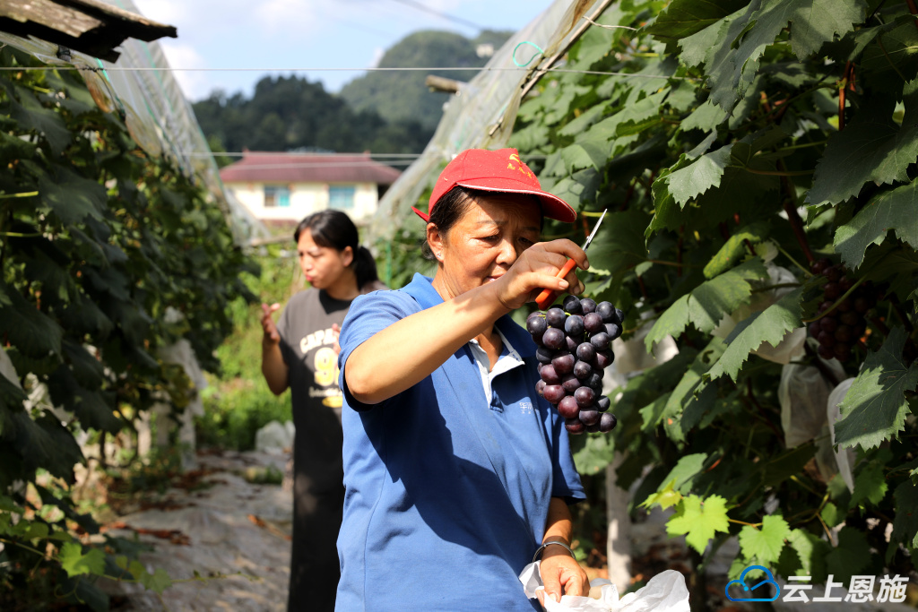 云上恩施报道(鹤峰通联记者陈玉玲)8月8日,鹤峰县下坪乡留驾村葡萄园里迎来了一拨又一拨采摘葡萄的游客。