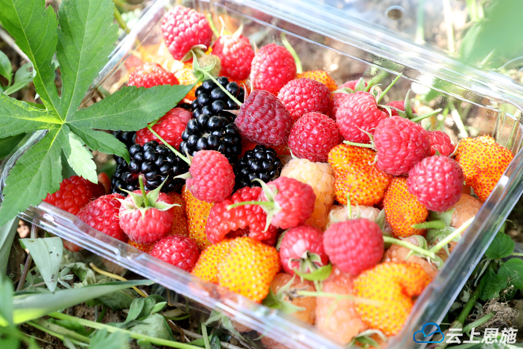 在二等岩村麒源水果农场,树莓也正是成熟期,树莓就是人们俗称的“泡儿”,农场负责人谢添种植树莓已有几年,目前有掌叶覆盆子、盾叶莓、黑树莓、橙色奇迹、哈瑞太兹等多种树莓品种,树莓保存时间较短但深受消费者喜爱,据了解一小盒树莓能卖到50元。