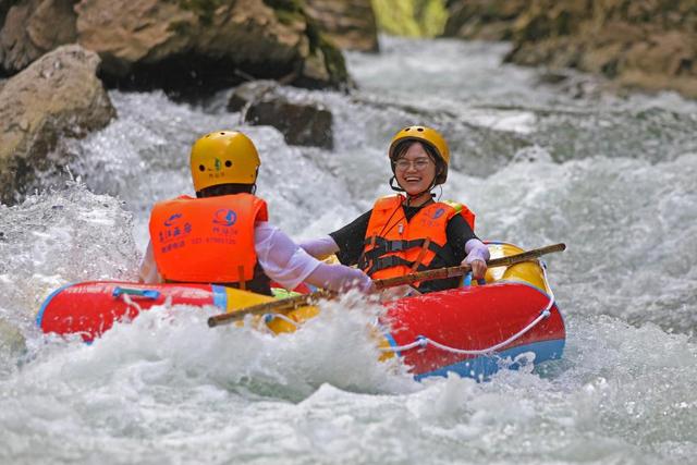 游客在阿依河景区体验漂流旅游项目。(赵勇 摄)