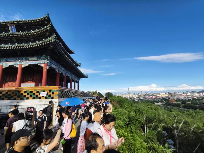 2024年8月12日,景山公园,许多游客在万春亭俯瞰中轴线美景。新京报记者 浦峰 摄