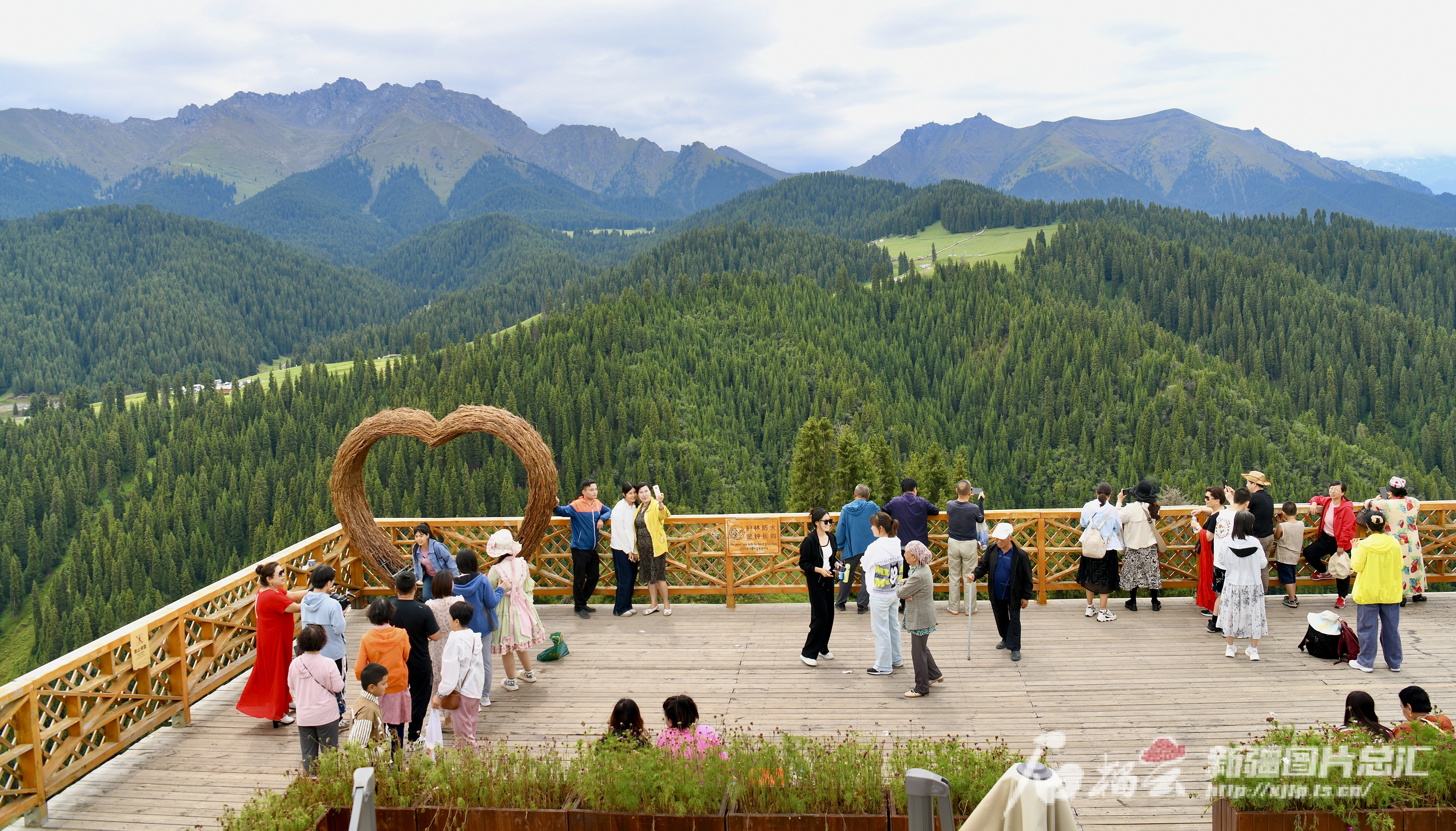 8月17日,游客在江布拉克景区观景台拍照留念。