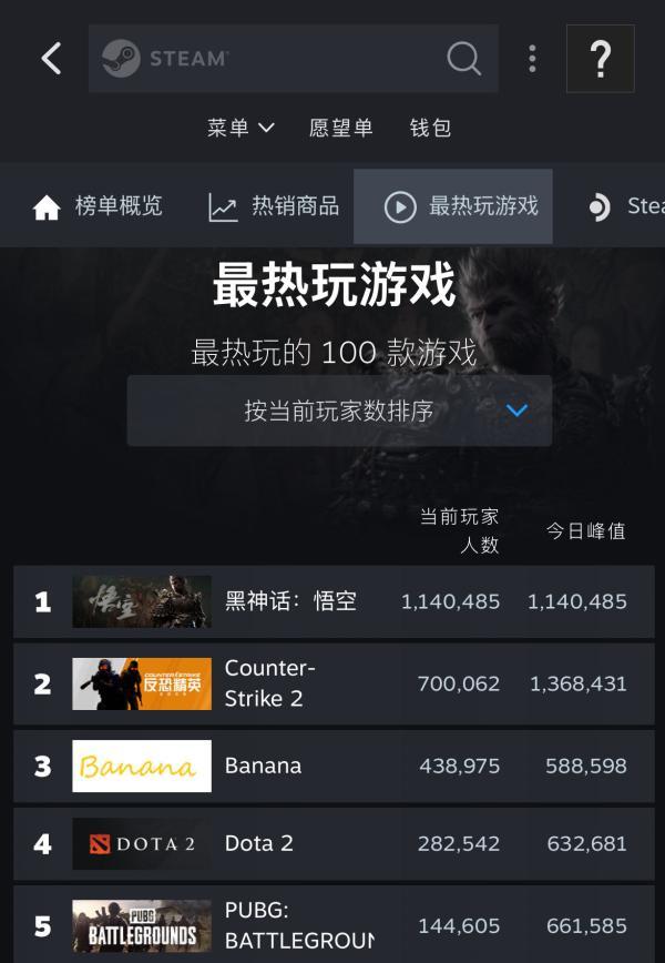 截至12时50分,Steam平台的同时在线玩家达140.4万,超越《CS2》登顶Steam热玩榜。
