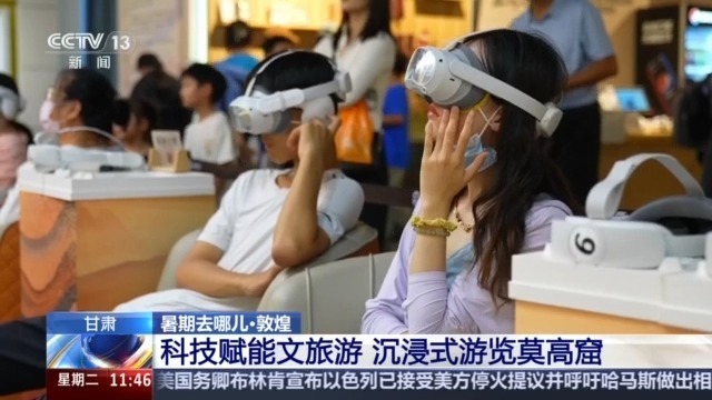 甘肃敦煌拥有世界文化遗产莫高窟、国家5A级旅游景区鸣沙山月牙泉以及阳关、玉门关等一众著名景点,这个暑期,客流量持续高位。除了传统的观光旅游体验,游客还可通过数字技术进行沉浸式游览。