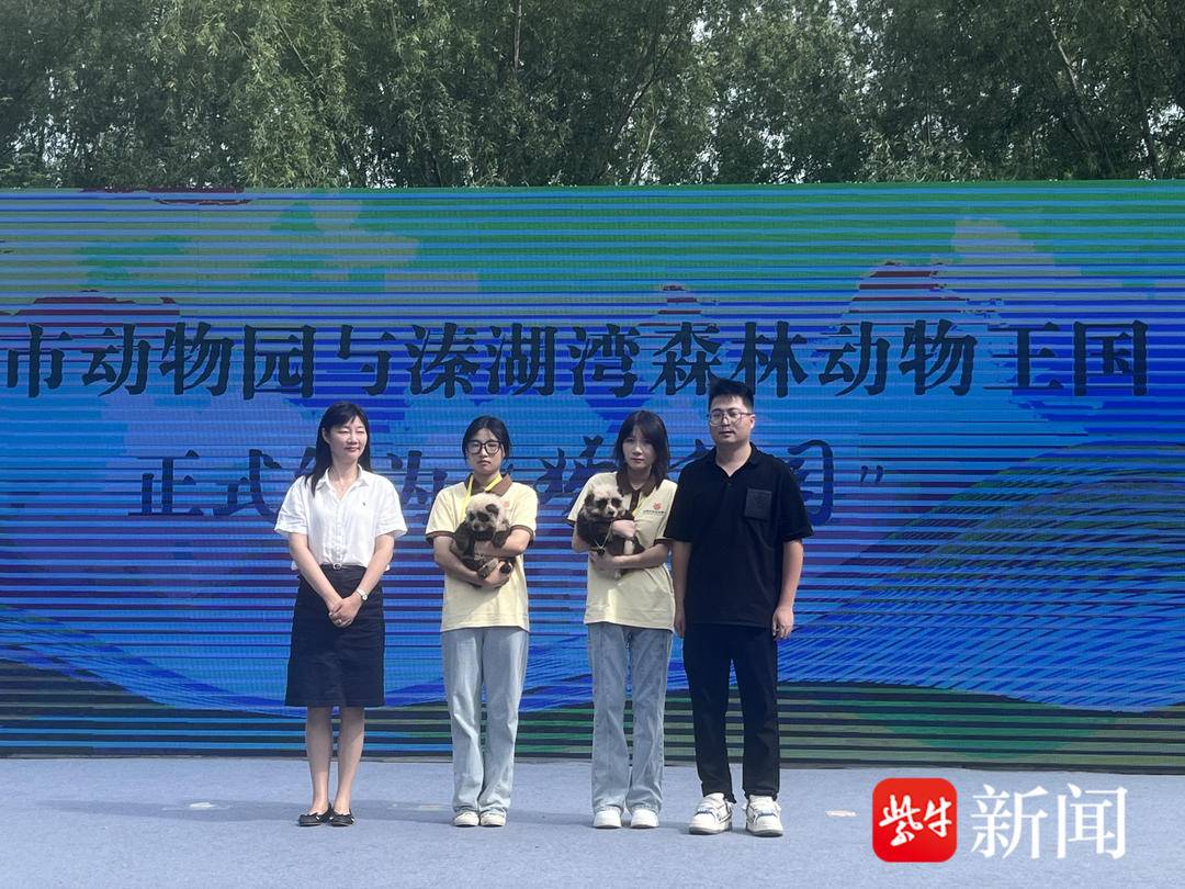 启动仪式现场,工作人员详细介绍了溱湖湾森林动物王国的动物种类、活动内容以及优惠政策。泰州市动物园与溱湖湾森林动物王国正式结为“姊妹园”,作为双方代表,两只“熊猫犬”(松狮犬)——“鱼圆”“虾球”闪亮登场,接受挂牌。随后,明星动物见面会大幕拉开,各位萌宠排队亮相,在场萌娃纷纷与萌宠进行亲密接触并拍照留念。现场还发布了泰州市首条动物科普主题研学线路——乐学动物“会”。