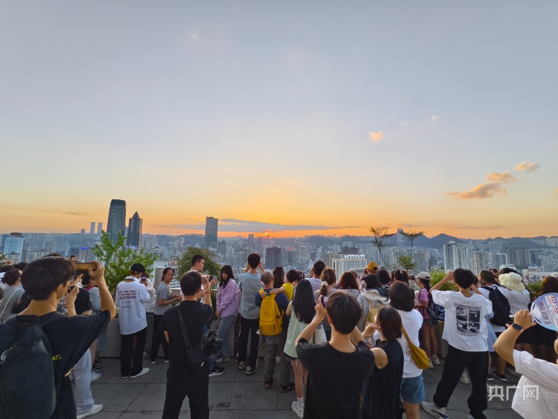 央广网贵阳8月23日消息(记者任振国)“处暑无三日,新凉直万金。”眼下,秋意渐浓,正是迎秋赏景、登高望远的好时节。在贵州省贵阳市,不少市民游客选择在傍晚登上海拔约1200米的东山山体公园,邂逅一场秋韵日落。该公园是贵阳城区的一个制高点,置身此处远眺,整个贵阳城尽收眼底,是观赏日落的绝佳之选。