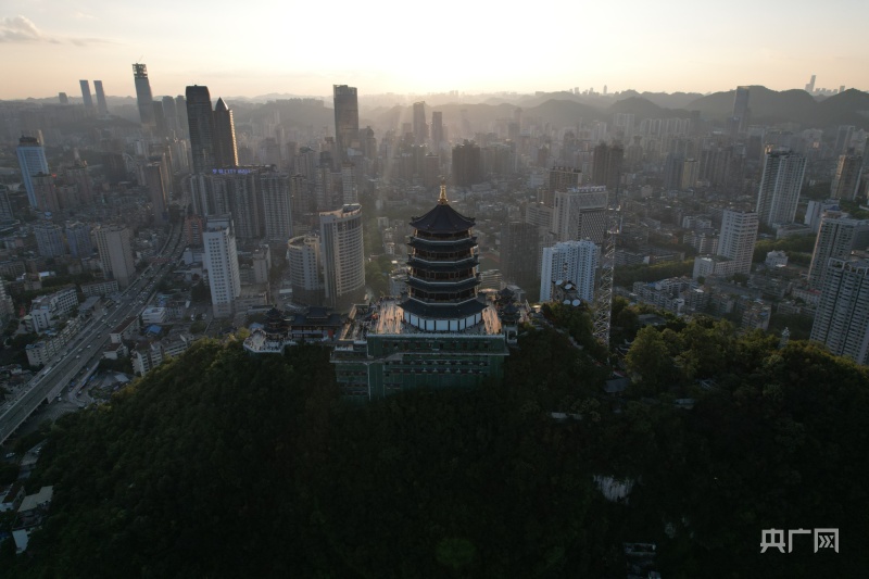 从公园山顶远眺落日下的贵阳城区(央广网记者任振国摄)