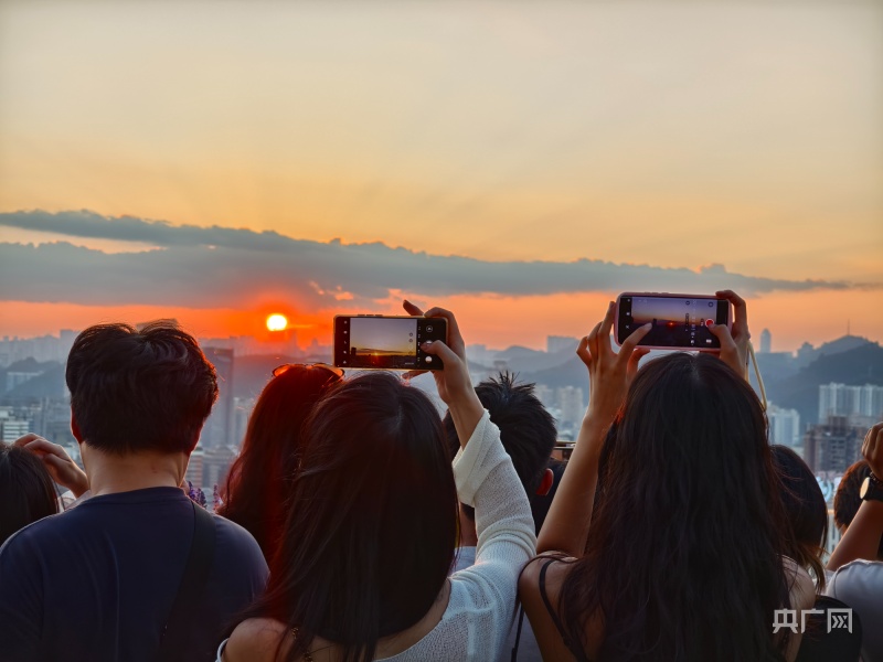市民游客用手机镜头记录下绝美的城市落日(央广网记者任振国摄)
