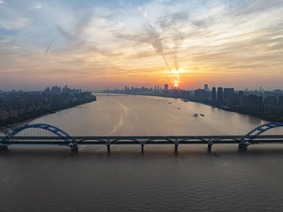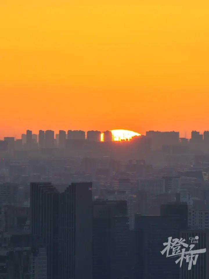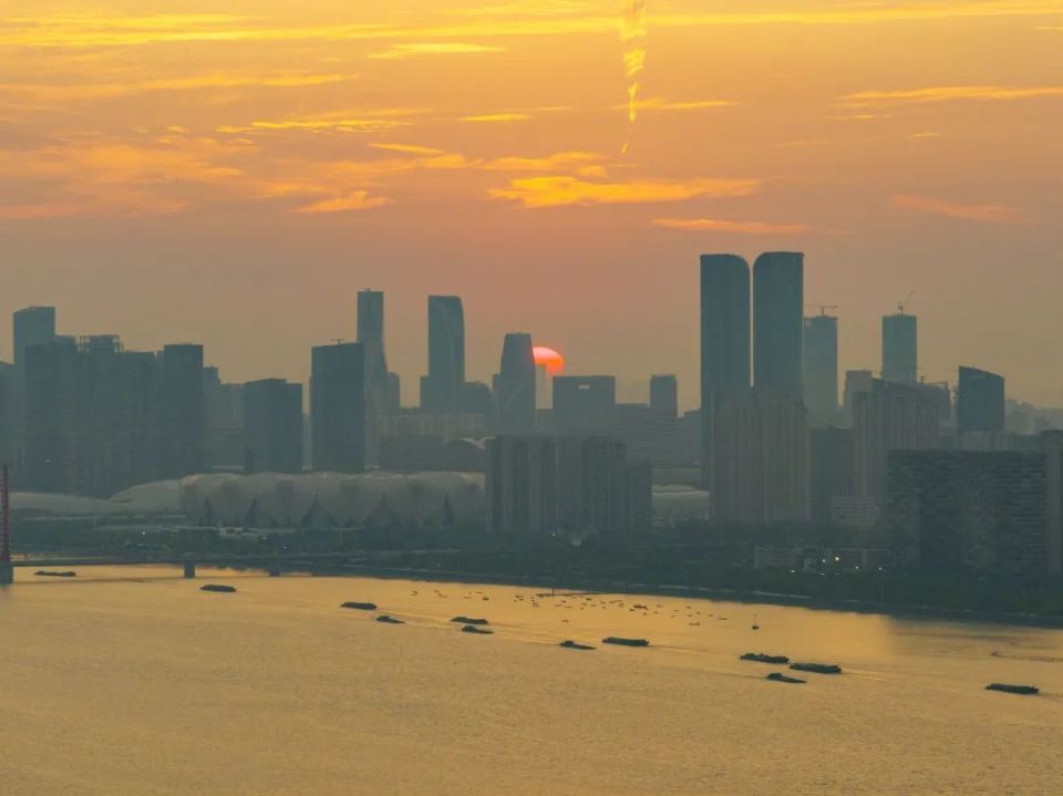 从复兴大桥上看到的,是太阳从高楼大厦间升起,看到的是杭州这座城市,活力“四射”的景象。