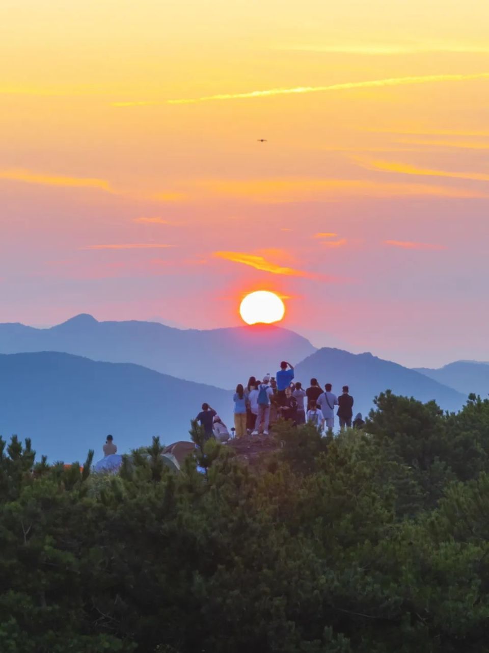 到北高峰看日出的,不仅是年轻人,还有许多到杭州来旅游的人。他们看完日出,还会在山顶的财神庙前拜拜,再去山脚下的灵隐寺景区逛逛。
