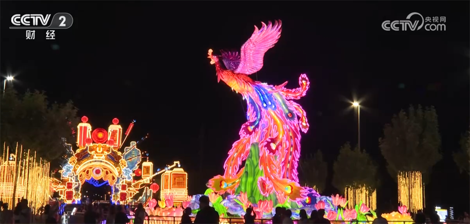 现场展出的彩灯有着“高、大、新、奇、特”等特点,其中,大型灯组迎宾门长约80米,单个灯笼最大直径就达15米;还有采用“彩色吹塑纸+透明亚克力”材质的“凤舞九天”灯组,这只“凤凰”全身共有4万片羽毛,每一片羽毛都由工匠手工剪制而成,灯组总剪制量就高达800万剪。