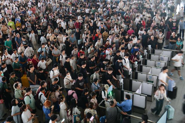 9月17日,在江苏无锡火车站检票口,旅客检票进站台。新华社发(还月亮摄)