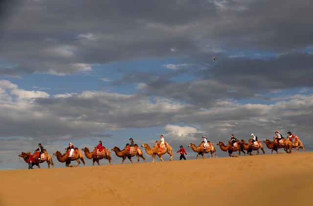 9月15日,游客在甘肃省敦煌市鸣沙山月牙泉景区游览。新华社发(张晓亮摄)
