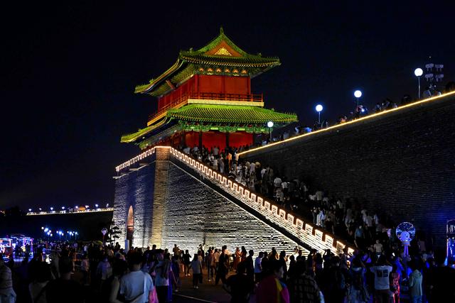 9月17日,游客在河北省石家庄市正定古城过中秋。新华社发(陈其保摄)