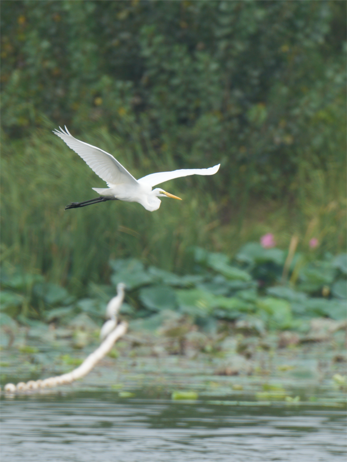 辉县市共海省级湿地公园里白鹭正在翩翩起舞。(湖北日报全媒记者 张灿)