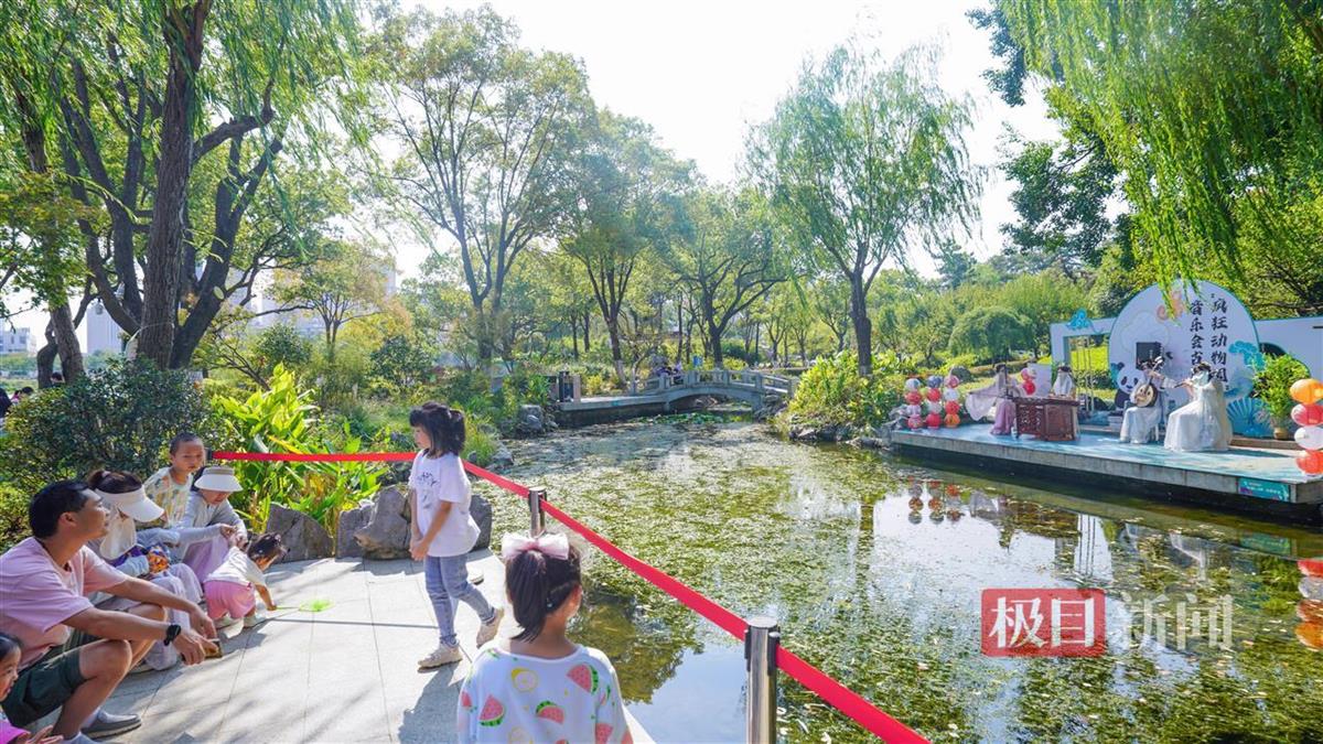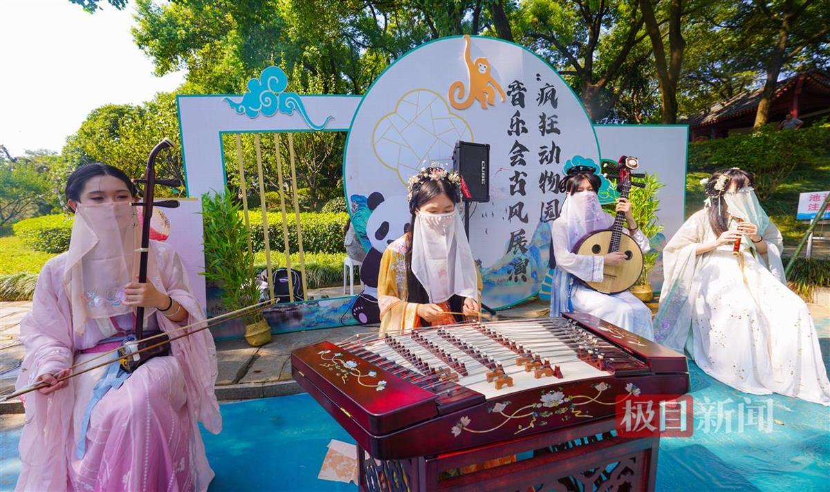 走过香樟大道,跨过小石桥,就是古风古韵的郢趣园,一场古风音乐会在此举行。几位小姐姐古风装扮,弹奏《笑傲江湖》《茉莉花》等曲目。