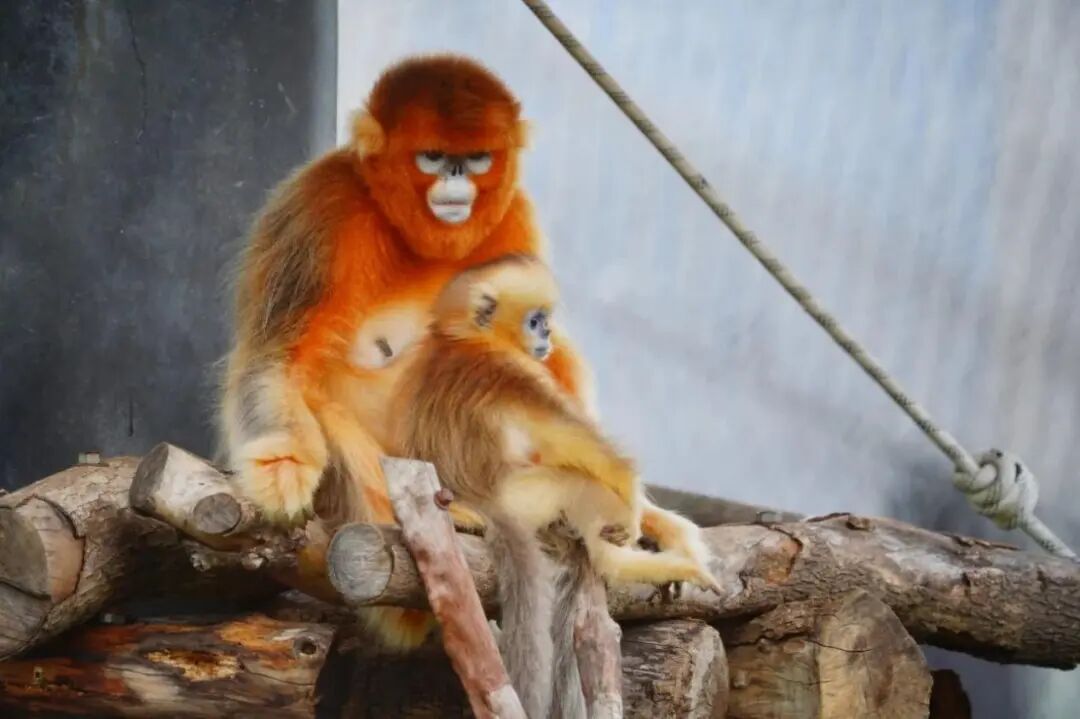 武汉动物园里的金丝猴妈妈正在照顾宝宝。