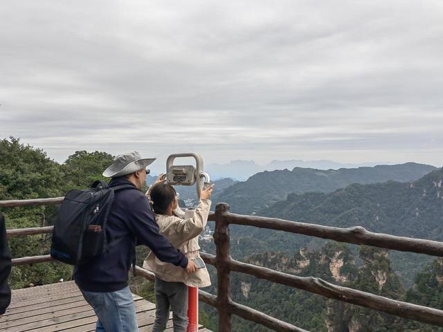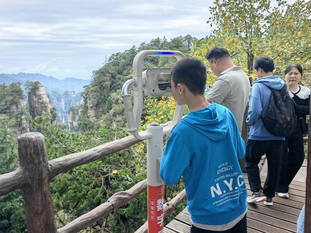 10月1日,张家界国家森林公园黄石寨景区,不少游客通过新投放的MR观景台设备,欣赏眼前的张家界地貌神奇风光。记者了解到,国庆假期期间,张家界国家森林公园推出MR观景台,让游客更加深度体验张家界峰林魅力。