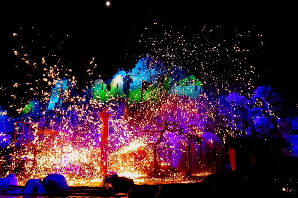 市区琅琊古城同样备受瞩目。据统计,国庆假期首日,琅琊古城的游客量便达到了5.2万人次。除了经典的国秀琅琊、只此琅琊、水秀表演外,景区新增了四个非遗“天团”表演,包括《满山铁花+火壶》、《璀璨灯火之国风巡游》、《璀璨灯火之非遗盒子灯》、《盛世国梦》,游客们在古城中穿越千年文脉,品味非遗文化的深厚底蕴。