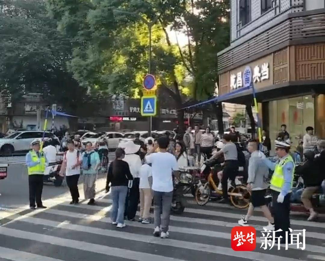 记者注意到,由于夫子庙景区游客众多,为了缓解过街难,确保通行有序,交警在夫子庙西牌坊中华路与瞻园路交叉口使用了“人工”式红绿灯,利用绳杆升降的方式来间断性放行。