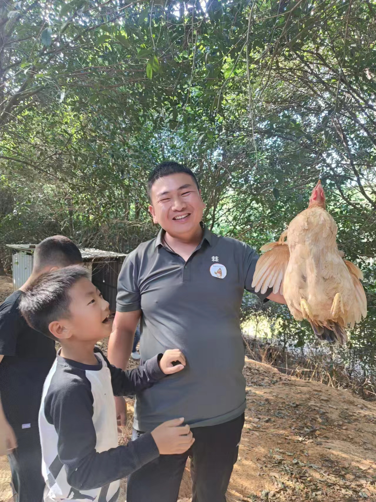 10月2日,在咸安区桂花镇明星村桂花鸡养殖专业合作社,游客和孩子们一起打桂花、捡鸡蛋、画蛋壳画、喝柴火灶土鸡汤,度过惬意的亲子时光。